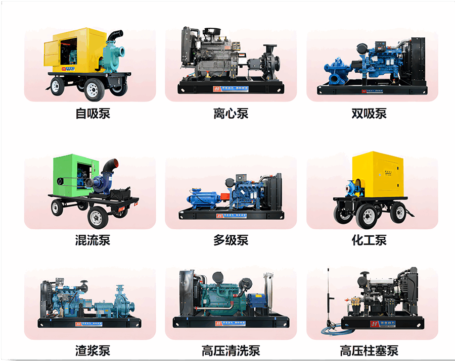 根據原理、結構的不同,華全電力水泵機組可以分為自吸泵、離心泵、雙吸泵、混流泵、多級泵、化工泵、渣漿泵、高壓清洗泵、高壓柱塞泵等。