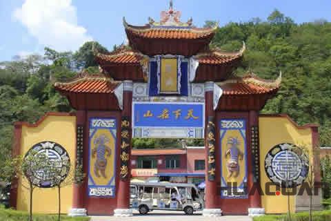 名山雖不高,卻也是古木參天,怪石林立,樓臺亭榭錯落有致;廟宇殿堂巧奪天工…… 為神奇的是天子殿,那陰森森的殿中央,身高6米的天子爺赫然高坐,神目如電,左右朝臣俯首聽命,謙恭有加;座前四大判官或捧生死簿,或握勾魂索,秉公執法,懲惡揚善。堂下十大陰帥,威風凜凜對排肅立,殿兩旁的東西地獄是陰曹地府的行刑場所,上刀山、下火海、甑子蒸、油鍋炸、磨子推、鋸子鋸、車馬裂、狼狗吃等種種酷刑,令人慘不忍睹,毛骨聳然。