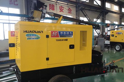 柴油發電機組升降燈是濰坊華全電力有限公司近年來研發的榮譽產品,是采用柴油發電機組作動力機,為四盞泛光燈提供電力能源,用于照明。柴油發電機組升降燈采用的動力源是柴油發電機組,體積小,操作方便,加之擁有吸音效果的靜音箱裝置,極大地遏制了發電機組運行時噪音的擴散。靜音箱內全面敷設波峰式吸音棉,覆蓋不留死角,確保全方位,大范圍吸收音波。