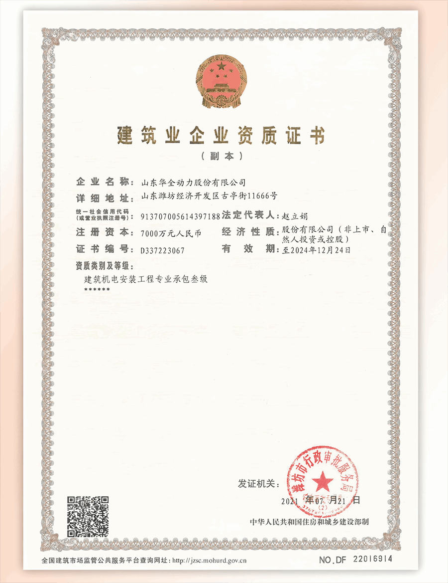 華全電力除了卓越的研發(fā)實(shí)力和生產(chǎn)能力,還具有優(yōu)秀的施工能力,已經(jīng)取得了建筑機(jī)電安裝工程專業(yè)承包叁級(jí)資質(zhì),可承接一般工業(yè)和公共、民用建設(shè)項(xiàng)目相關(guān)設(shè)備的安裝。